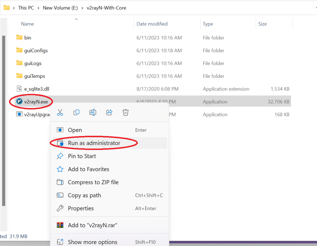 روی فایل v2rayN-With-Core.zip دانلود شده کلیک راست کرده و از حالت فشرده خارج کنید ( extract all) سپس یک پوشه ایجاد میشود که باید وارد آن پوشه جدید شوید